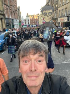 Back home, a few weeks ‘off-grid’ in Cromarty gave me the chance to finish polishing the 2026 novel, and once I’d sent it off to my publisher I was free to begin travelling again, taking another much shorter cruise around Ireland. This meant I missed the Edinburgh Book Festival, possibly for the first year ever, but needs must, and I was back home in time to be the inaugural guest curator of Bloody Scotland. What a weekend that was, starting with a procession that included a mahoosive effigy of your truly – I was worried they were going to burn it at the end, possibly with me trapped inside. But instead we celebrated with a series of fantastic talks and related events, covering everything from whisky to war crimes.